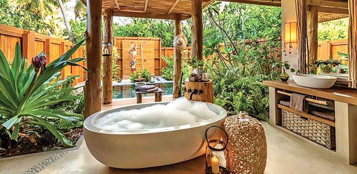 Impossible d’imaginer une salle de bain tropicale sans plantes ! Elles apportent de la vie et purifient l’air :